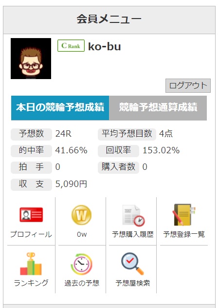 今回は、その3で記事にした買い目を実際に、「ヨソカツ」のko-buのページにて